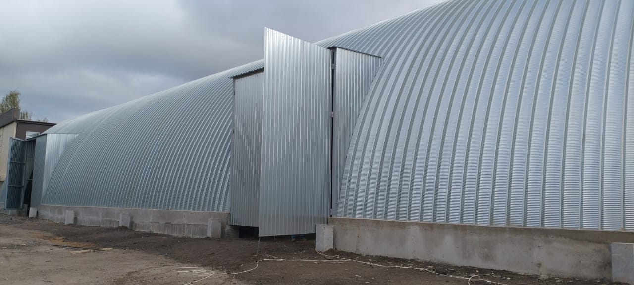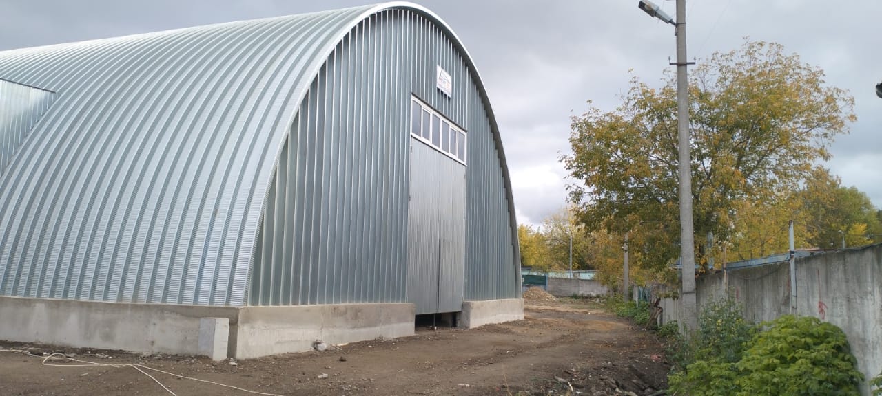 Арочный ангар 18*42*8, ростверк 70 см с 2мя боковыми воротами и промышленными полами